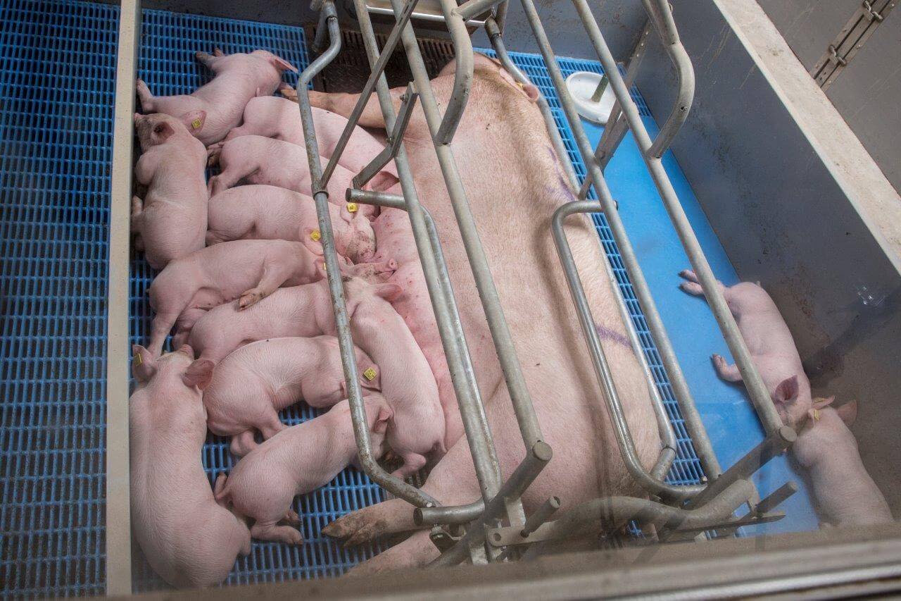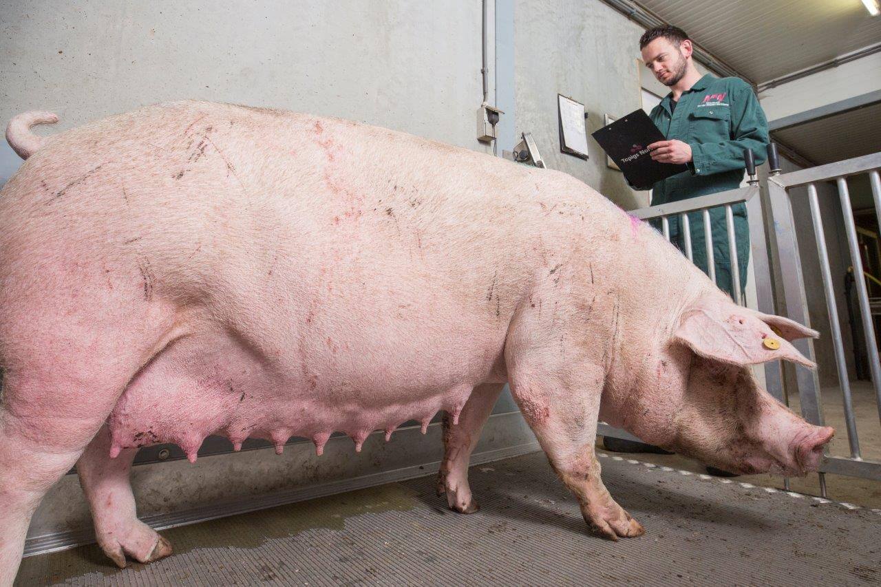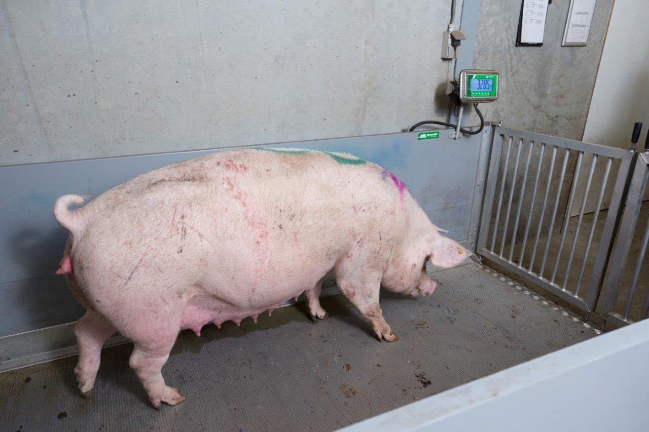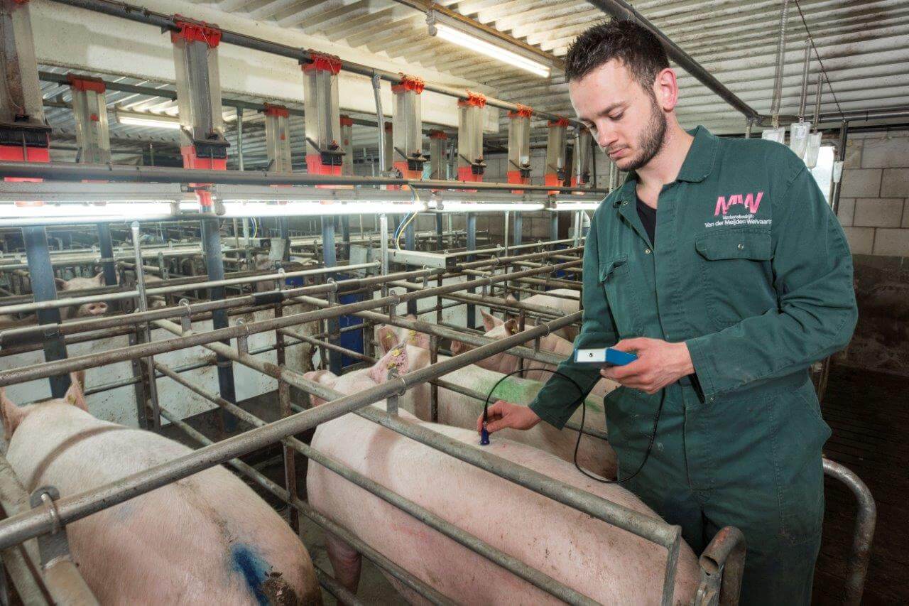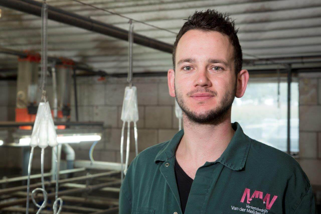 Ricky Machielsen (25) is bedrijfsleider op het bedrijf met 1.000 zeugen bij Van der Meijden-Welvaarts in Oirschot-Spoordonk. Elke week worden zo’n 650 biggen (TN70 *Tempo) direct na spenen op transport gezet. Op een leeftijd van 27-28 dagen wegen de geltjes en beertjes gemiddeld 7,5 kilo. De uitval in de kraamstal blijft beperkt tot 8 procent. Door zeugen en gelten te wegen en het management aan te scherpen is de conditie van de dieren steeds beter te sturen.